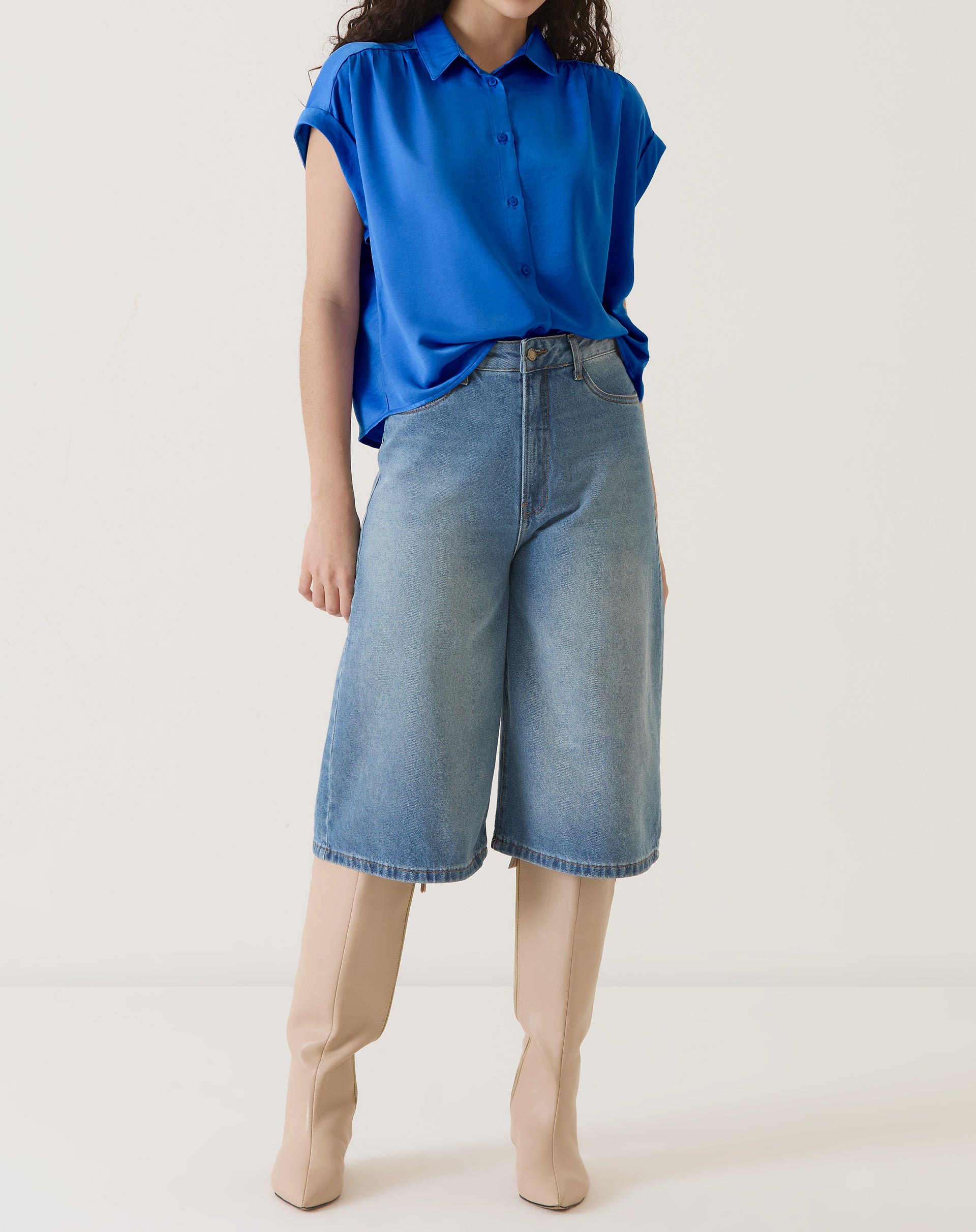 CAMISA MANGA CURTA DE CETIM - AZUL