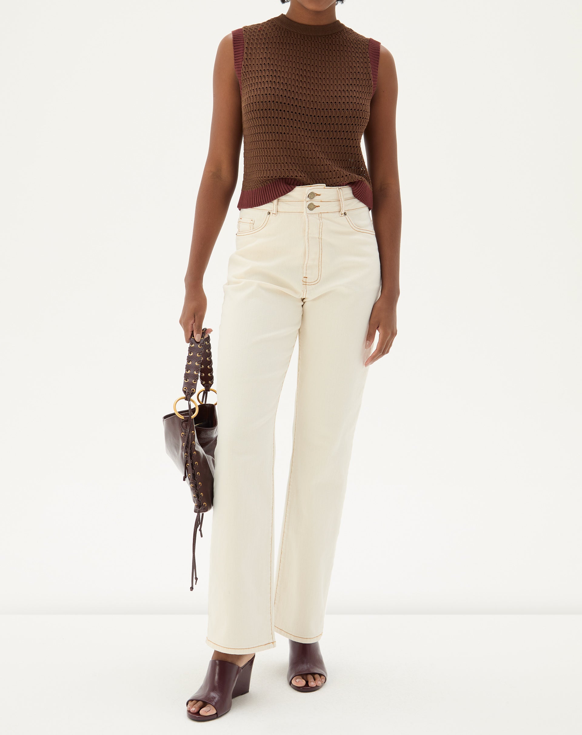 A calça reta de cintura alta em sarja é um item essencial para o closet de quem busca um look elevado e versátil. Confeccionada em algodão, seu estilo clássico e detalhes minimalistas garantem elegância em qualquer ocasião.