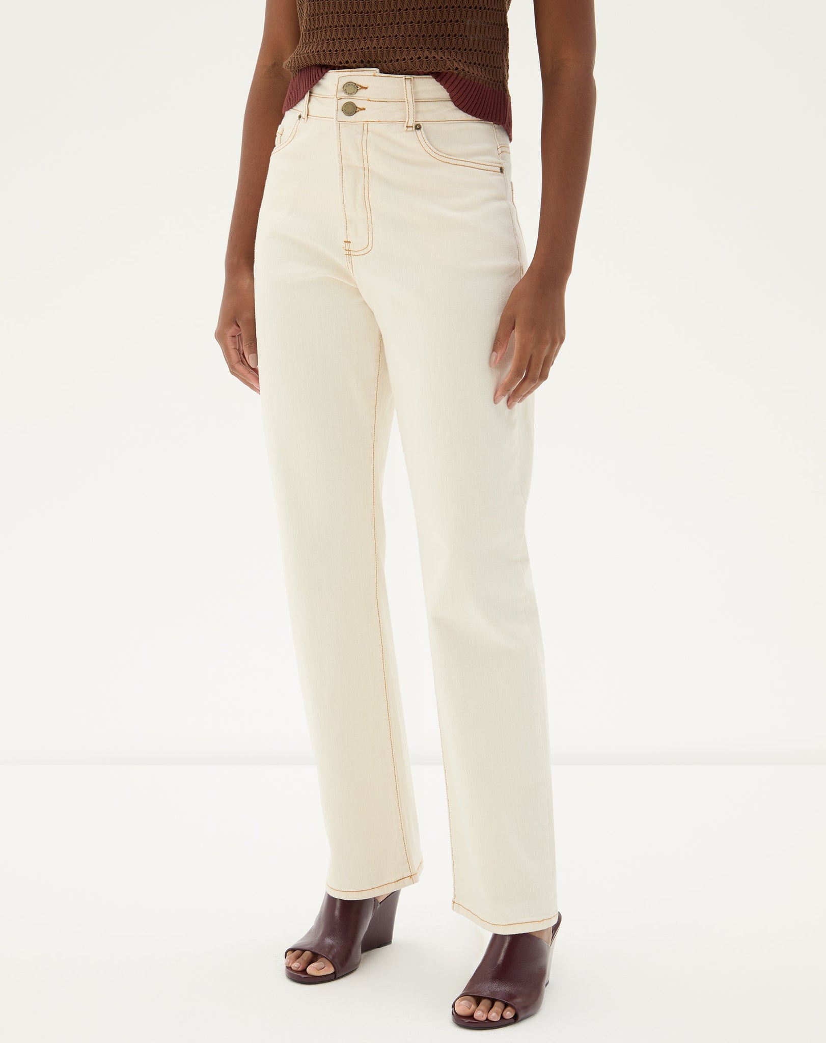 CALÇA RETA CINTURA ALTA SARJA - BEGE