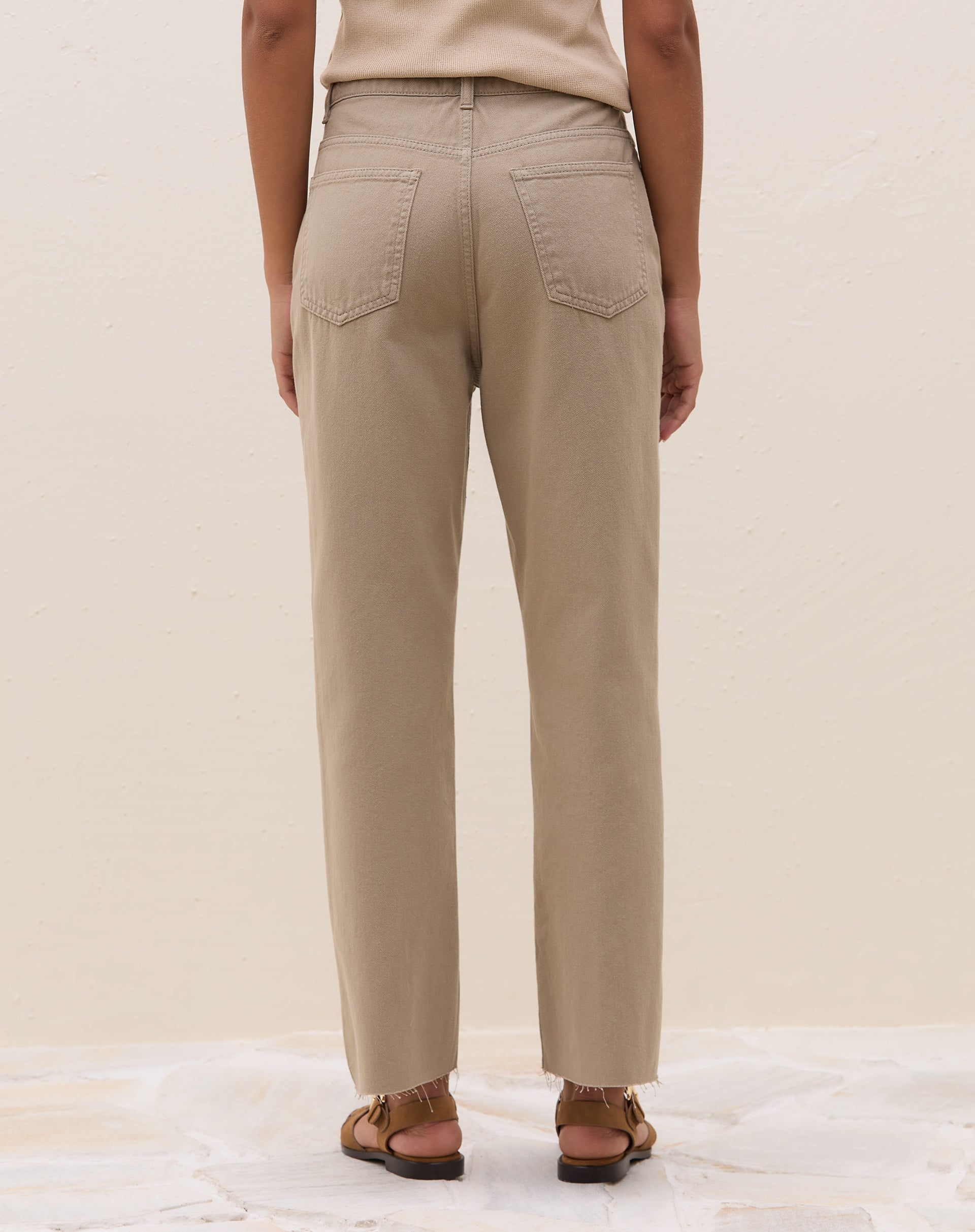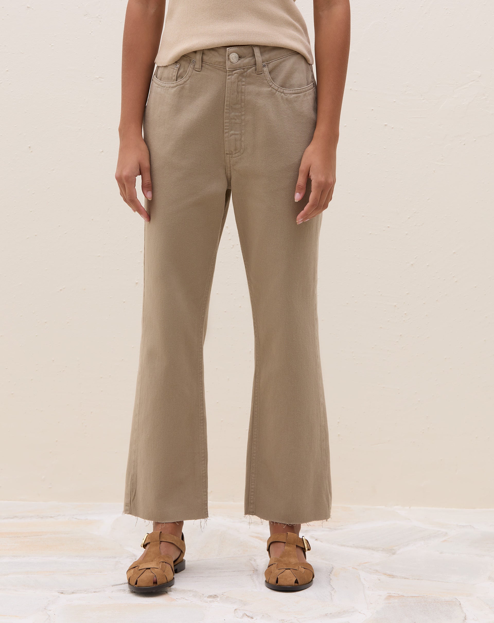 Calça Reta Cropped de Sarja - Bege
