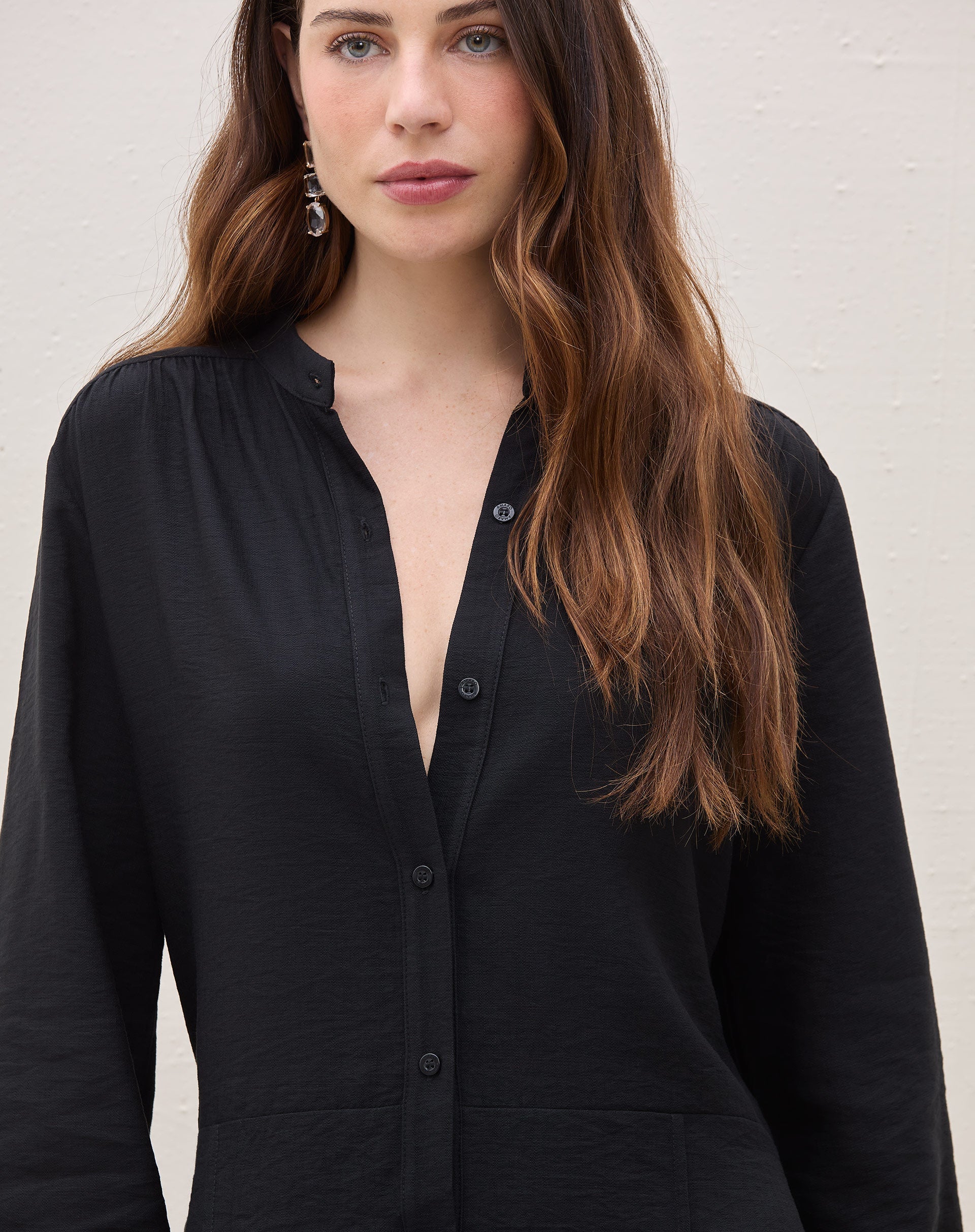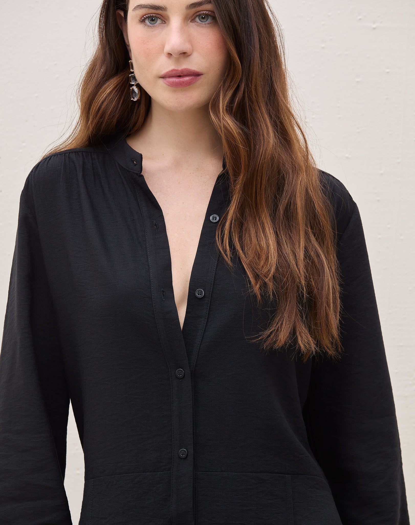 Modelo tem 1.79m de altura e veste o tamanho P / 38
