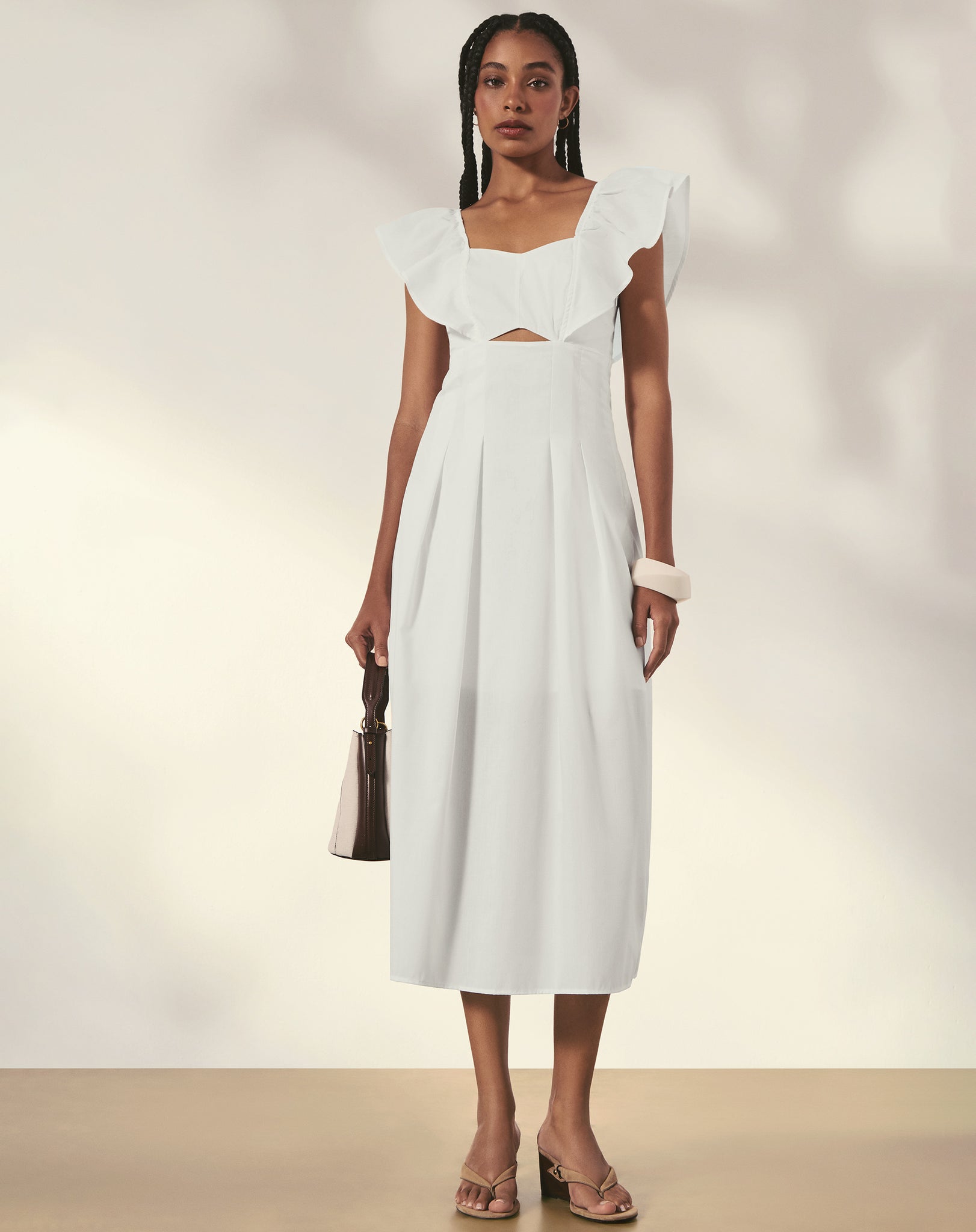 VESTIDO MIDI DE TRICOLINE - OFF-WHITE