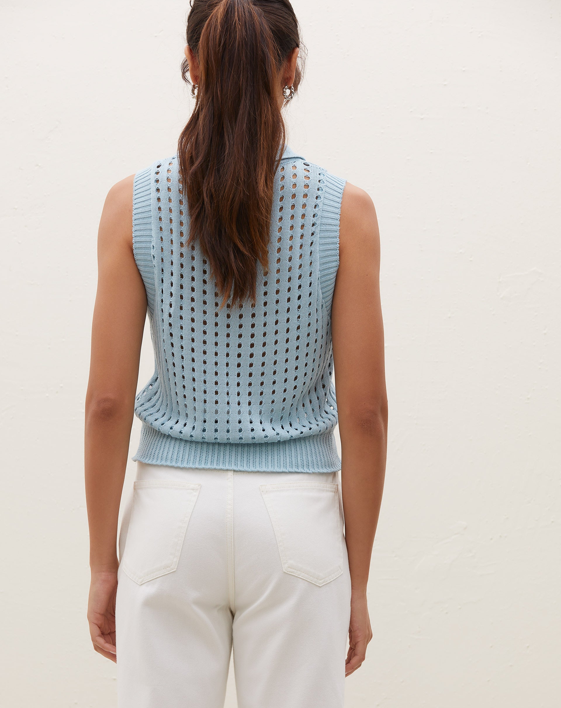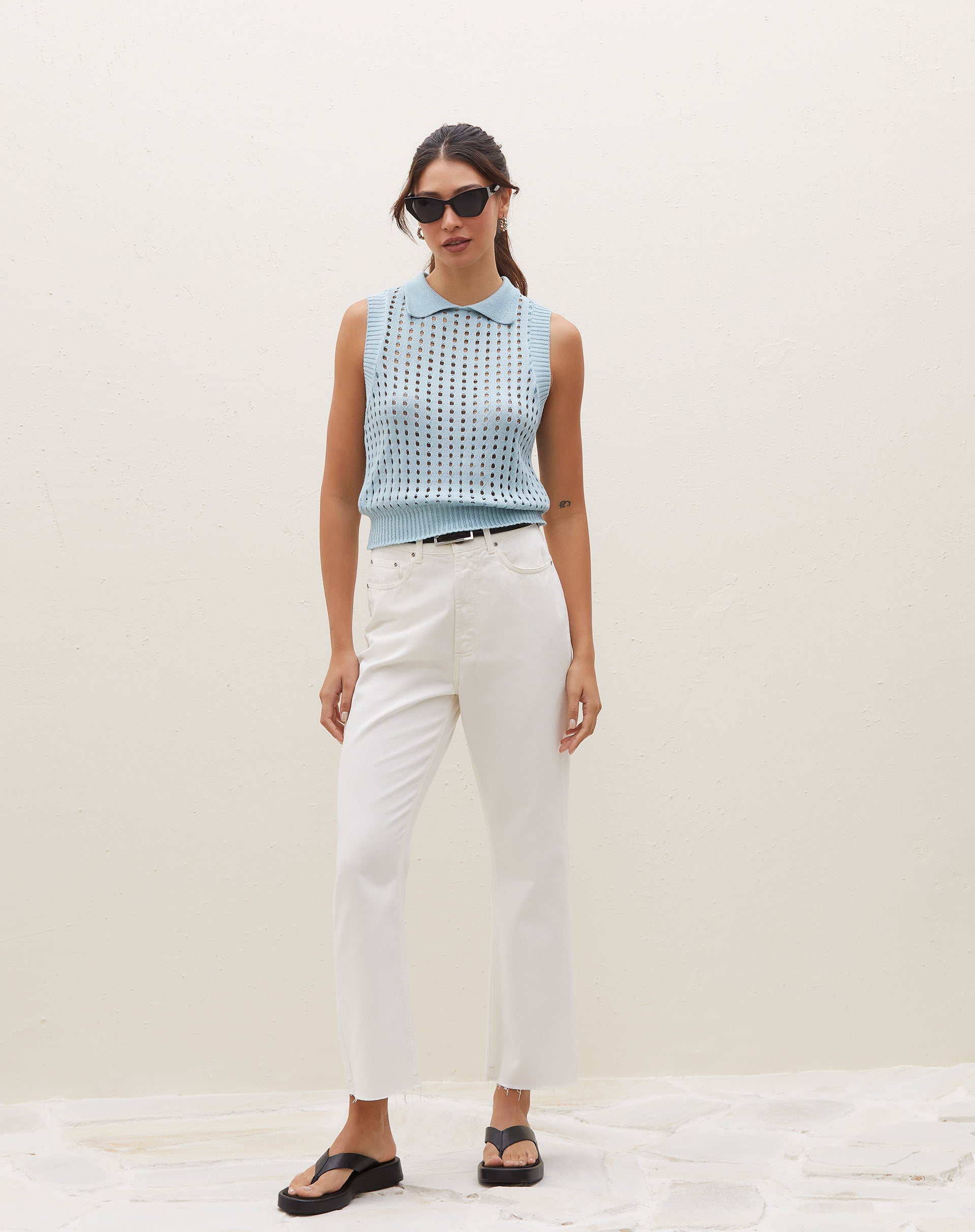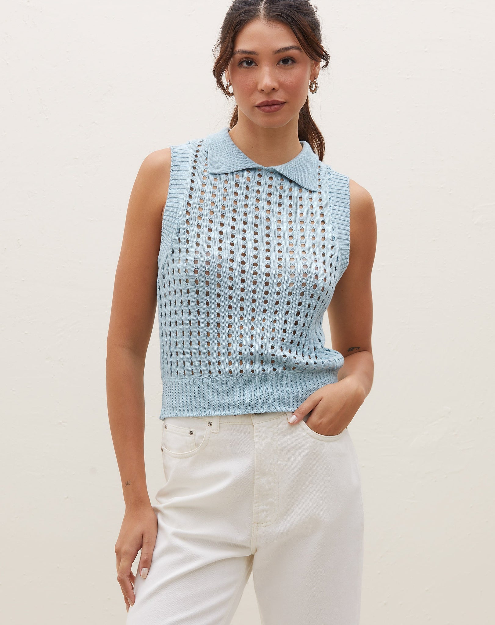 Blusa Gola Polo de Tricot, perfeita para um look casual e elegante. O design minimalista e o comprimento curto garantem um visual moderno e versátil.