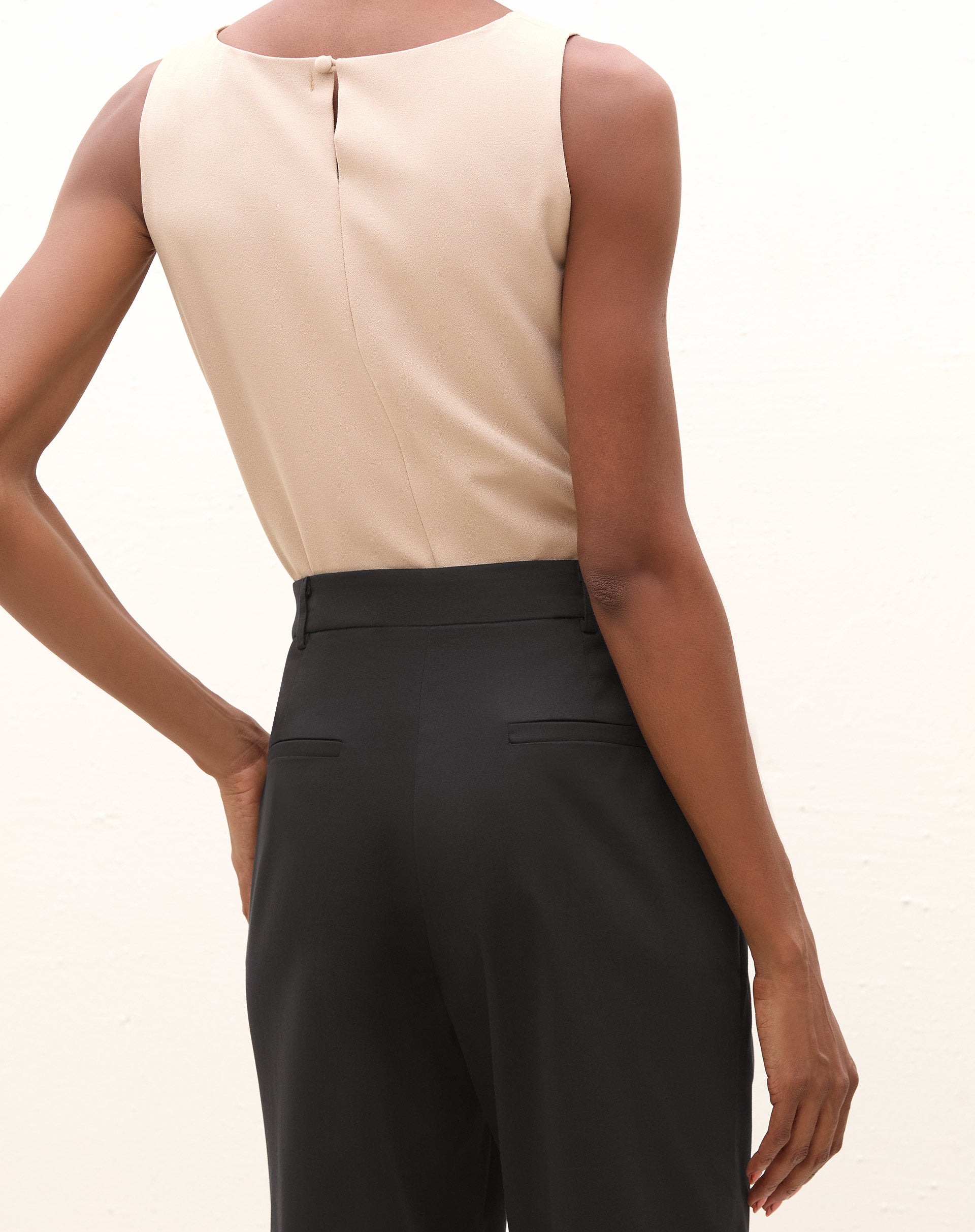 Calça alfaiataria baggy cintura alta com pregas, perfeita para um look elegante e moderno. Versátil e confortável, ideal para reuniões de negócios ou happy hour.