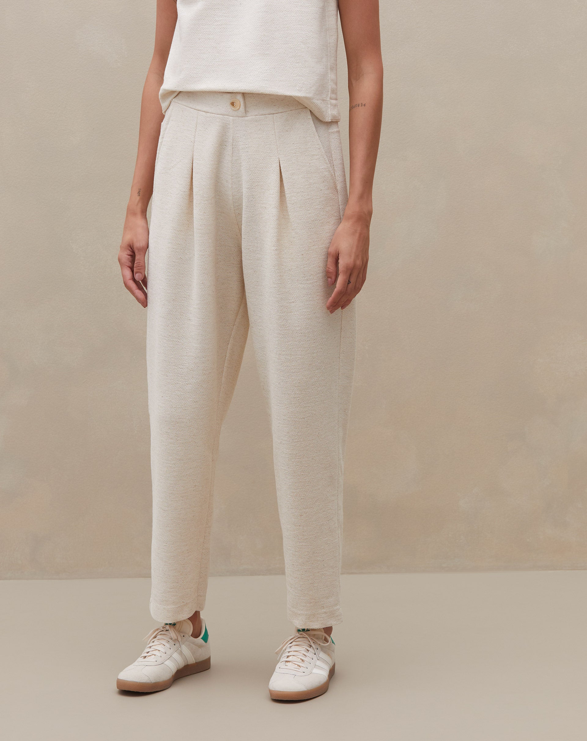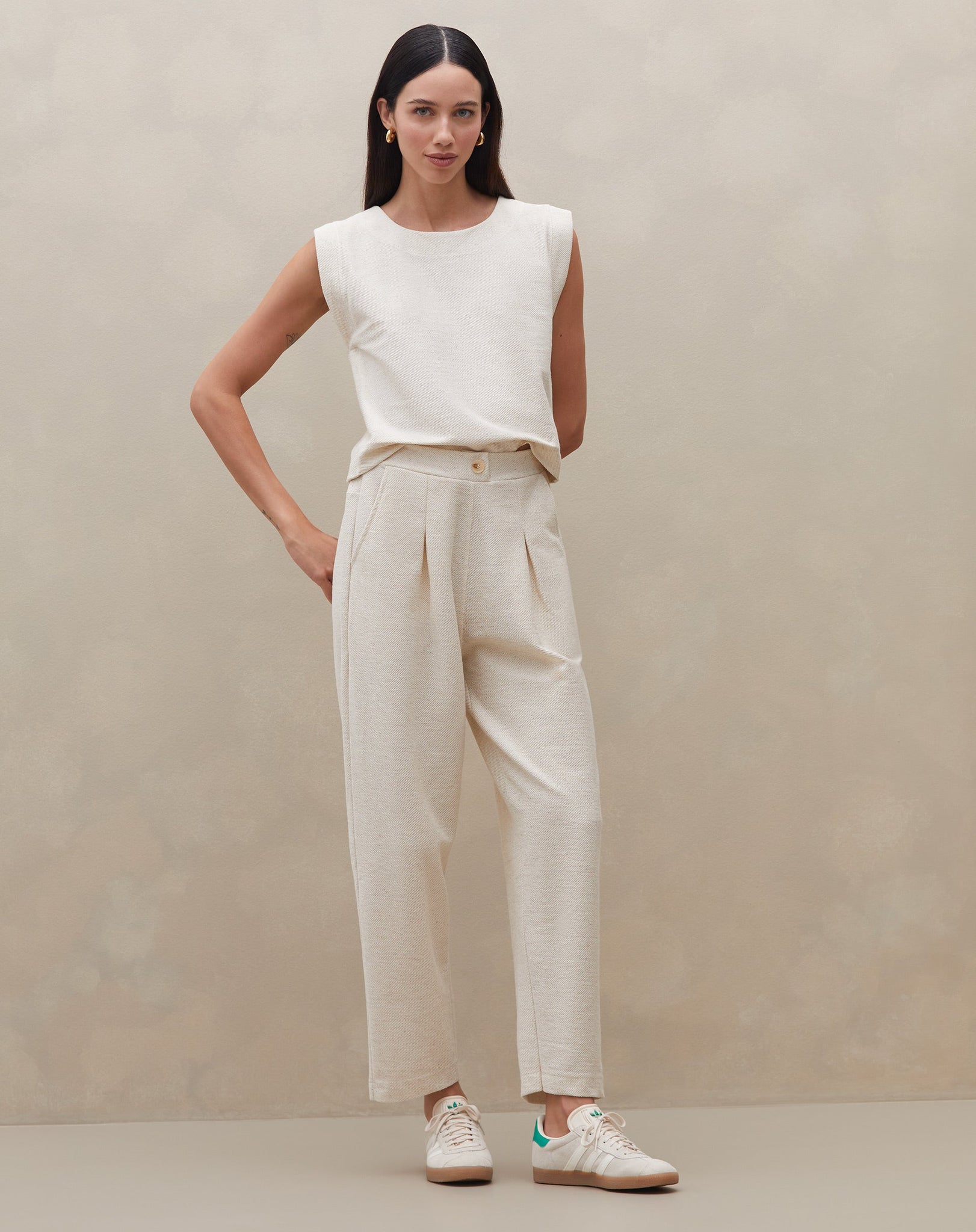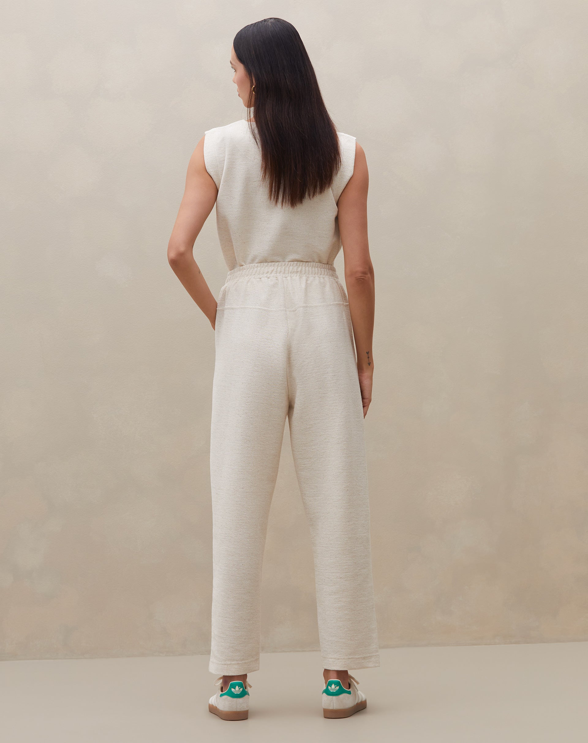 Desfrute do conforto e elegância desta calça de malha texturizada de cintura alta. Perfeita para um look casual ou para o trabalho, essa peça versátil e atemporal é um item curinga em qualquer closet.