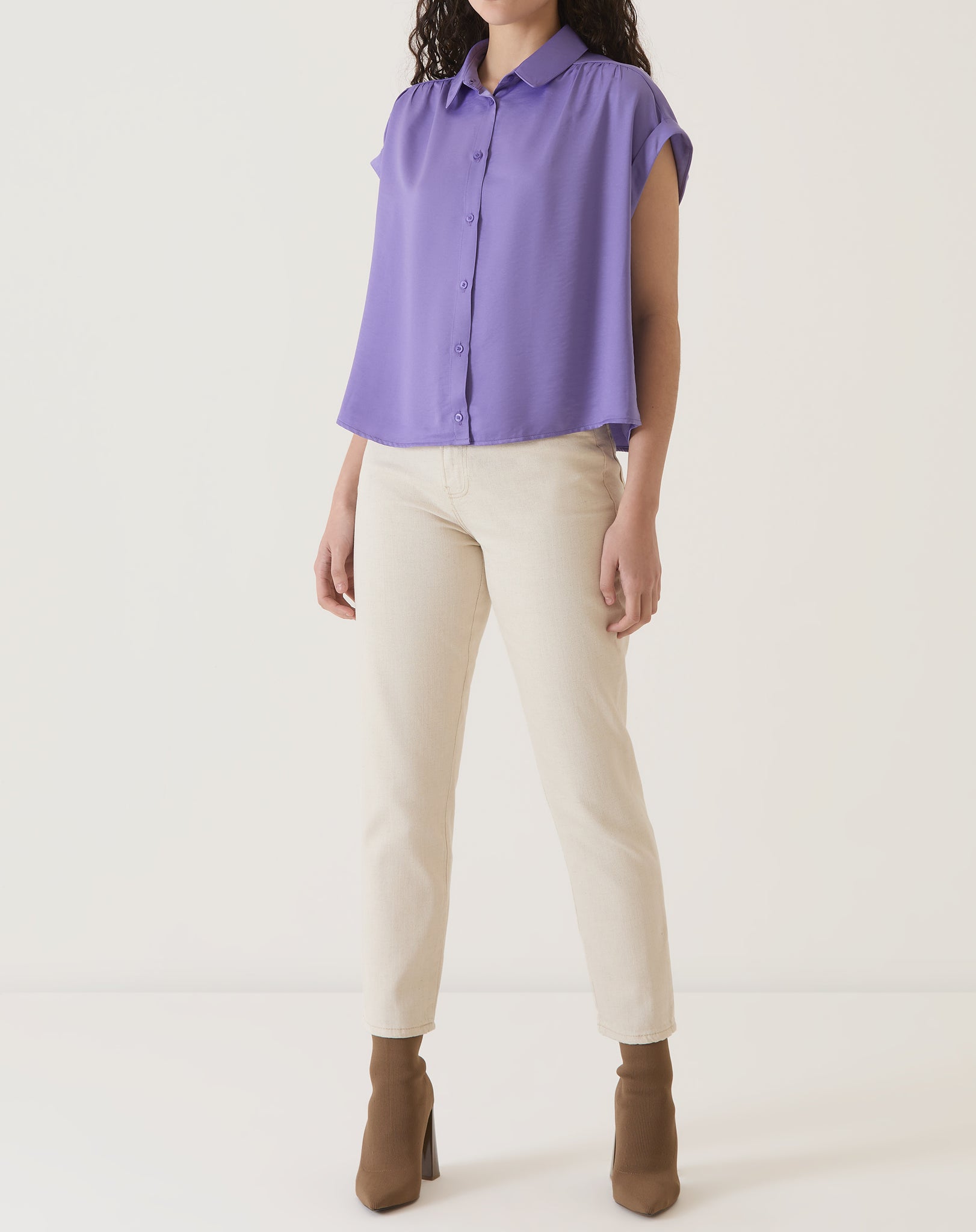 CAMISA MANGA CURTA DE CETIM - ROXO
