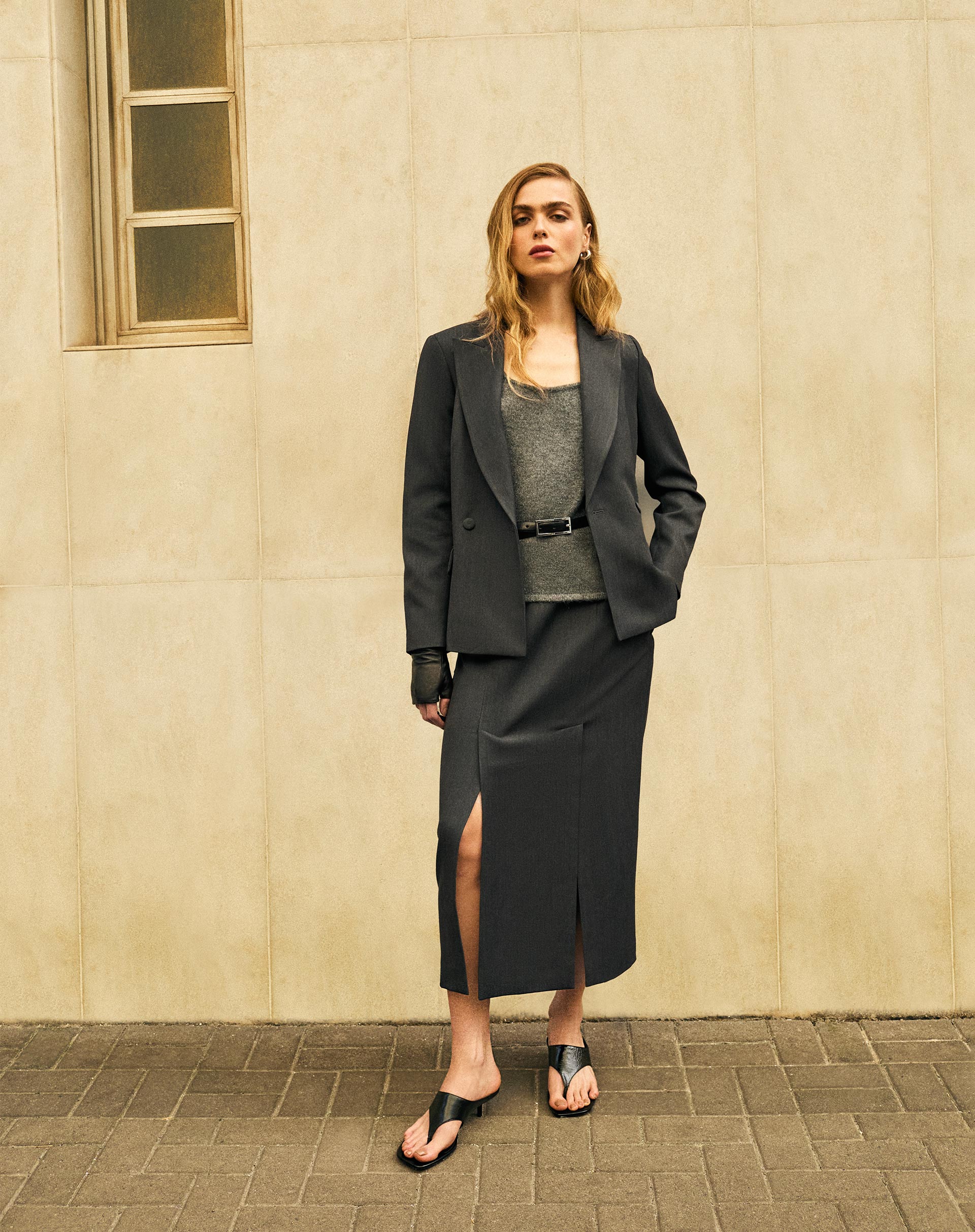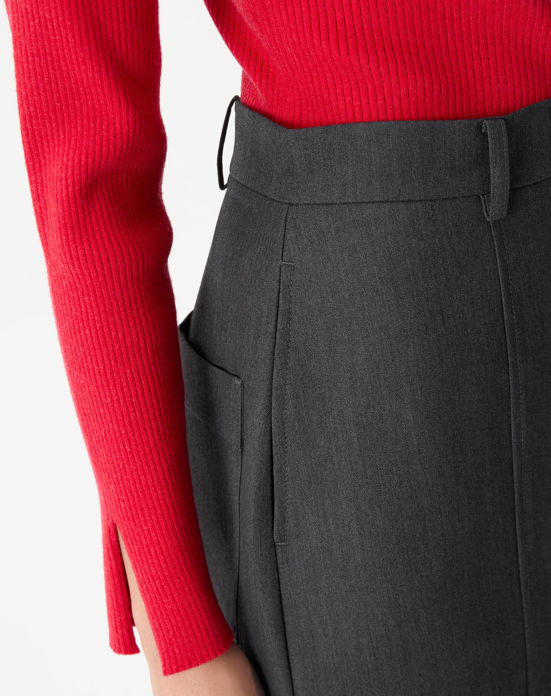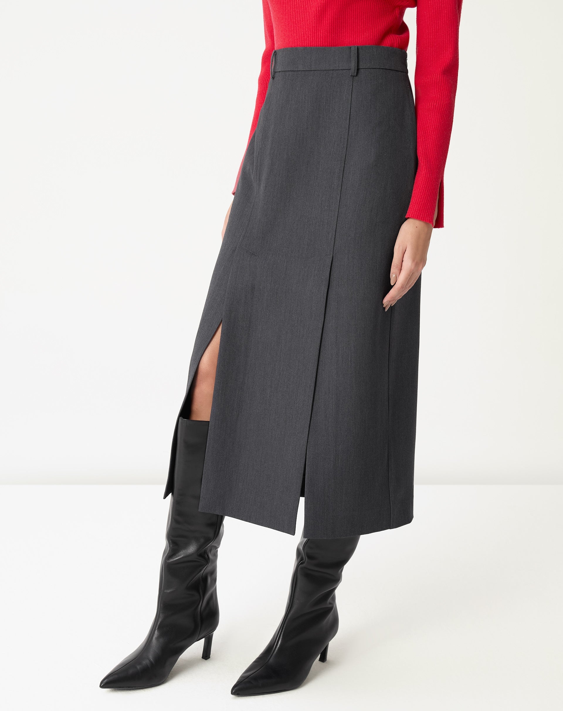 Saia Midi com Fendas Alfaiataria - Cinza