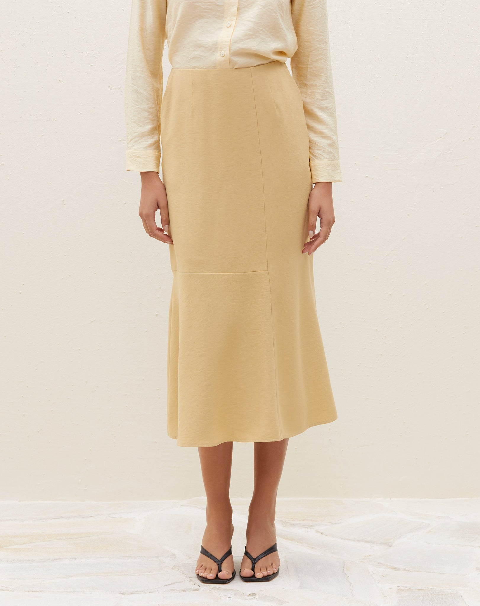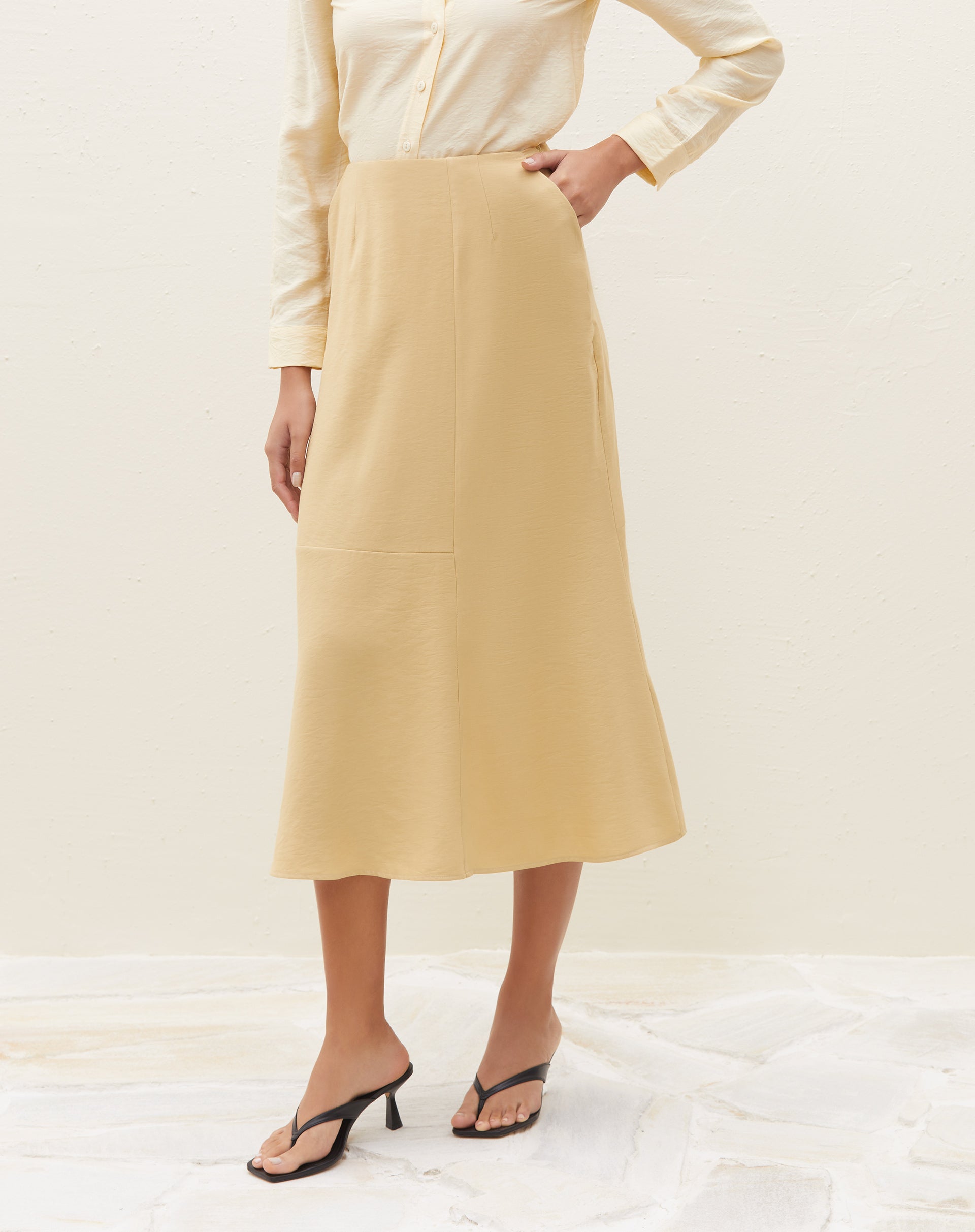 Saia Midi com Recortes - Areia